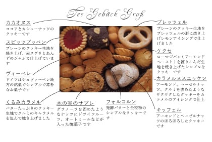 原材料:小麦粉、砂糖、きび砂糖、バター、発酵バター、アーモンド、卵、ヘーゼルナッツ、全粒粉、牛乳、カシューナッツ、ココア、クルミ、オートミール、コーンフレーク、パンプキンシード、クランベリー、カレンズ、ゴマ、ハチミツ、あんず、赤スグリ、レモン、ベーキングパウダー、洋酒、塩、香辛料、レモン表皮・果汁、ペクチン、香料(バニラ)